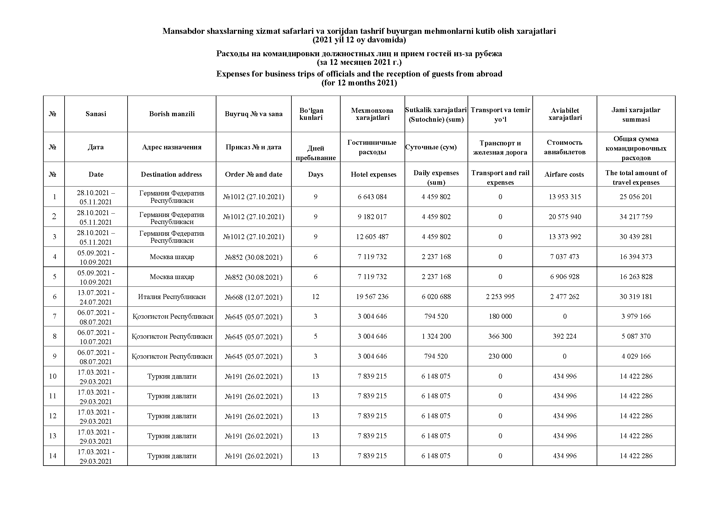 List of services trips